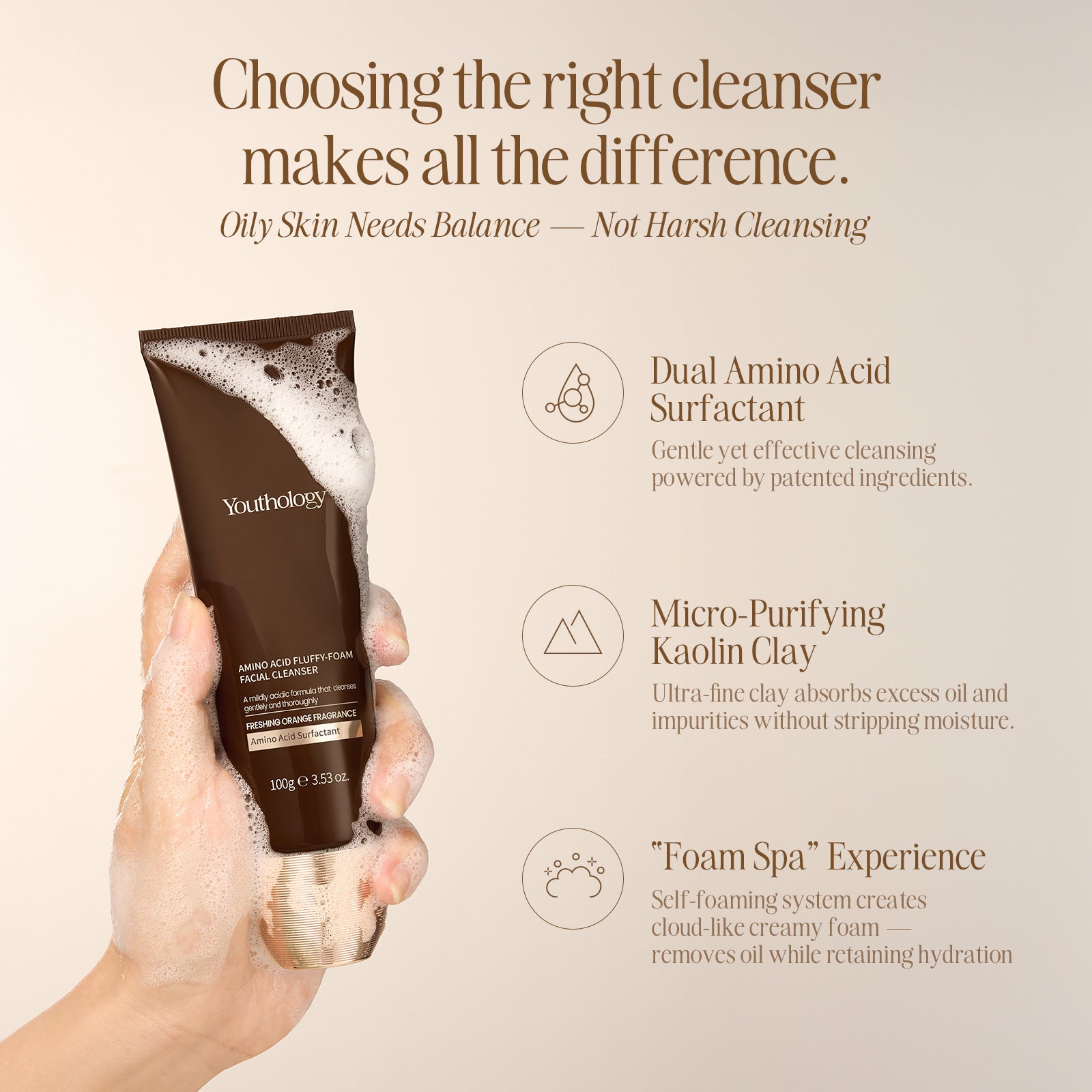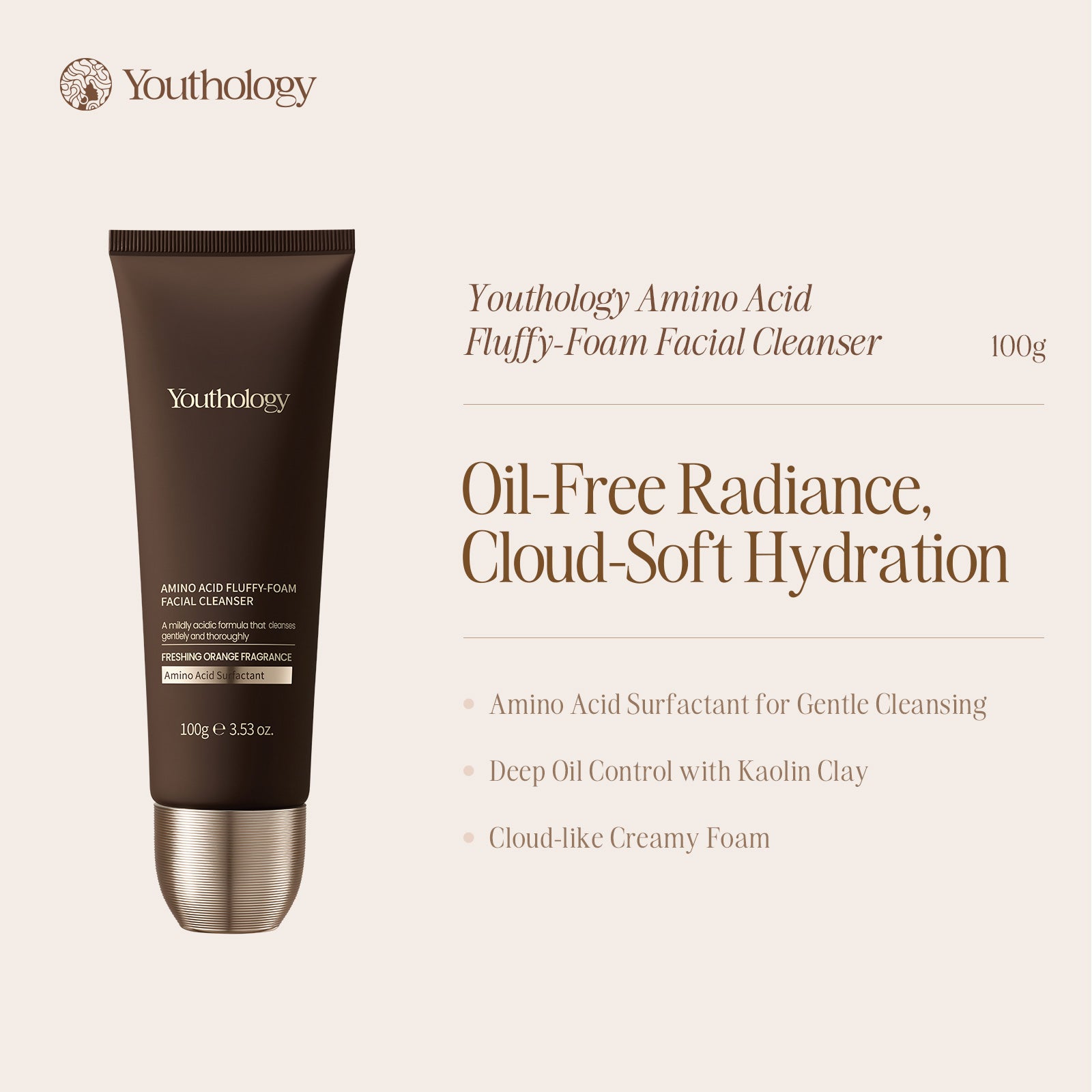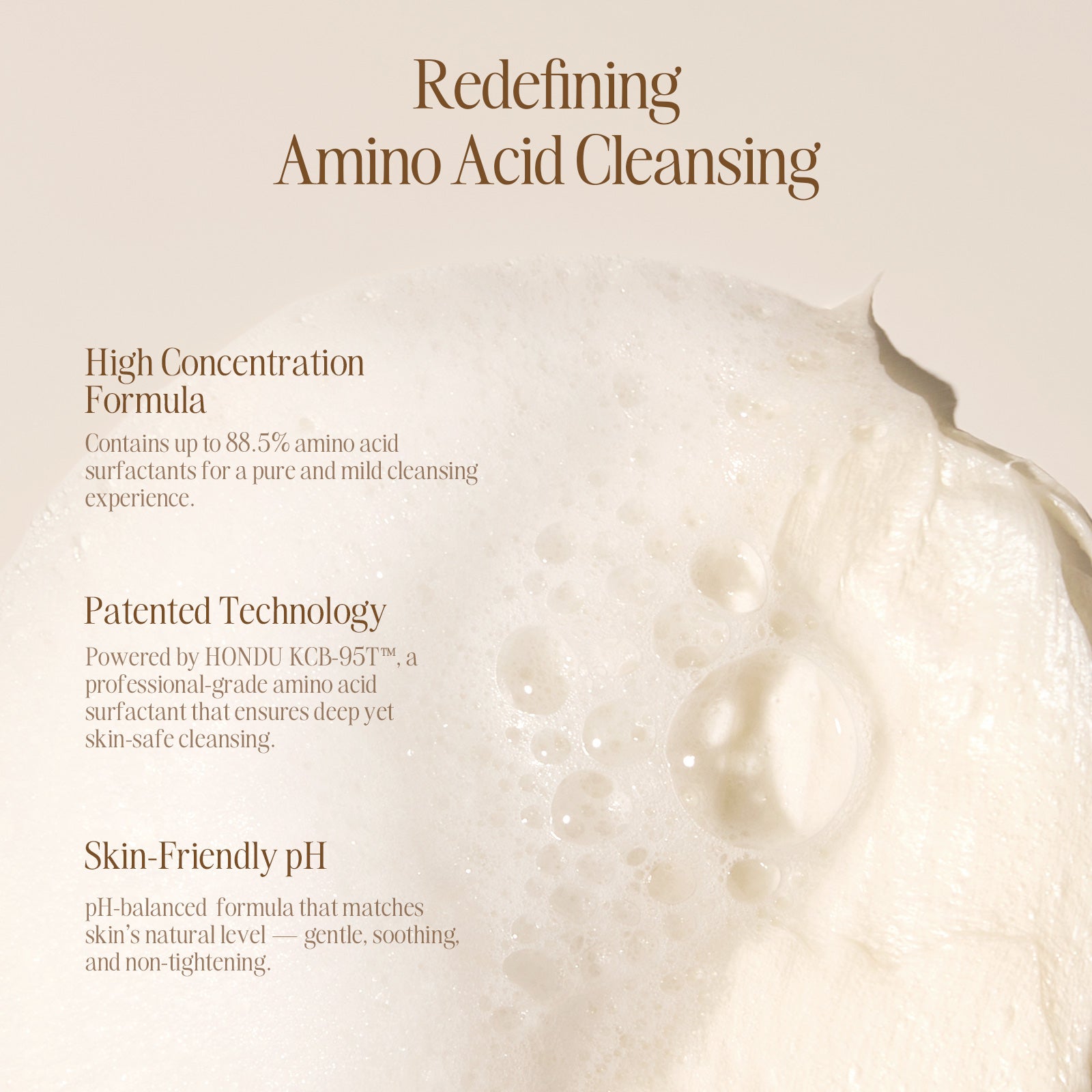 A gentle amino acid cleanser that creates rich, cloud-soft foam to remove excess oil, clear pores, and keep your skin fresh, soft, and never tight.