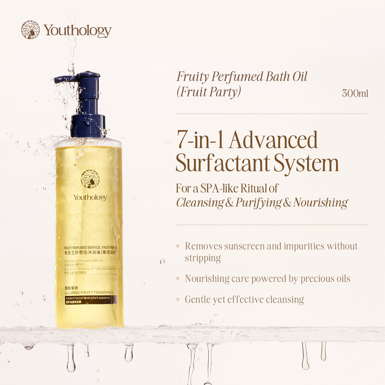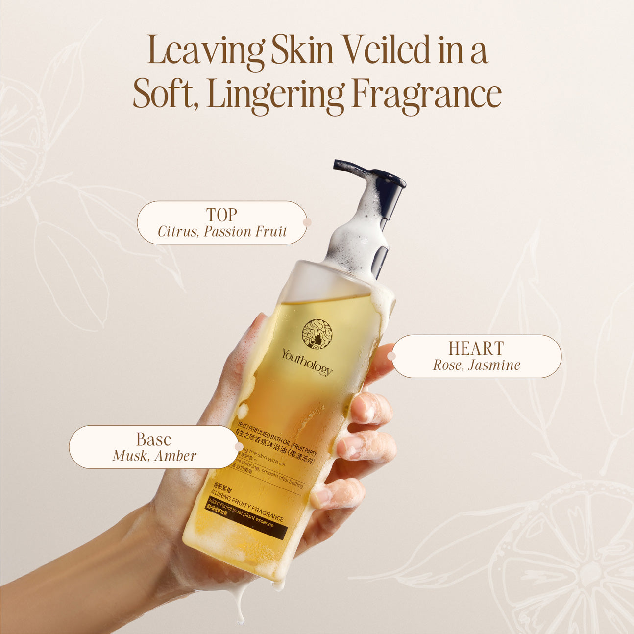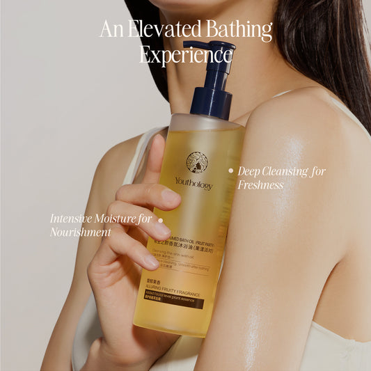 A luxurious fruity bath oil that deeply cleanses, nourishes, and softens the skin with precious oils and a long-lasting fragrance for a spa-like ritual.
