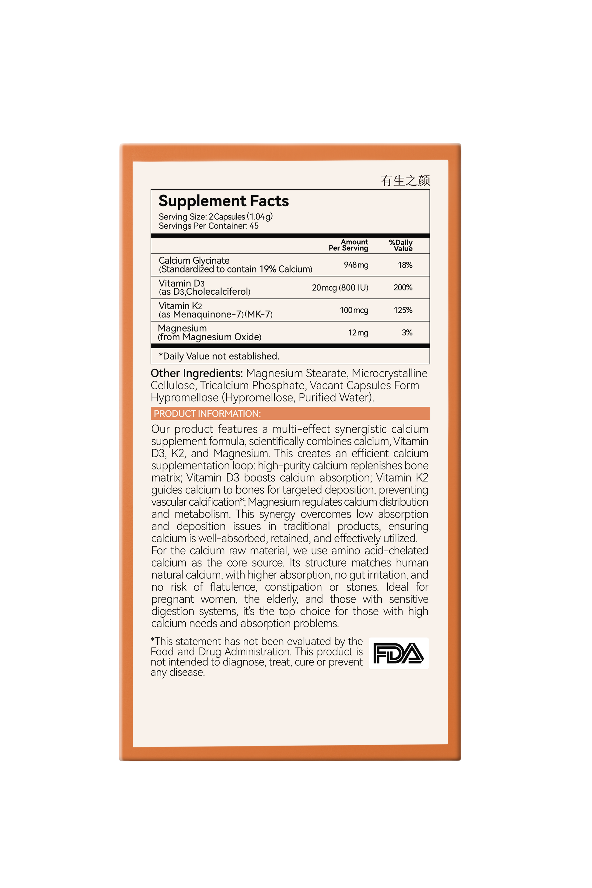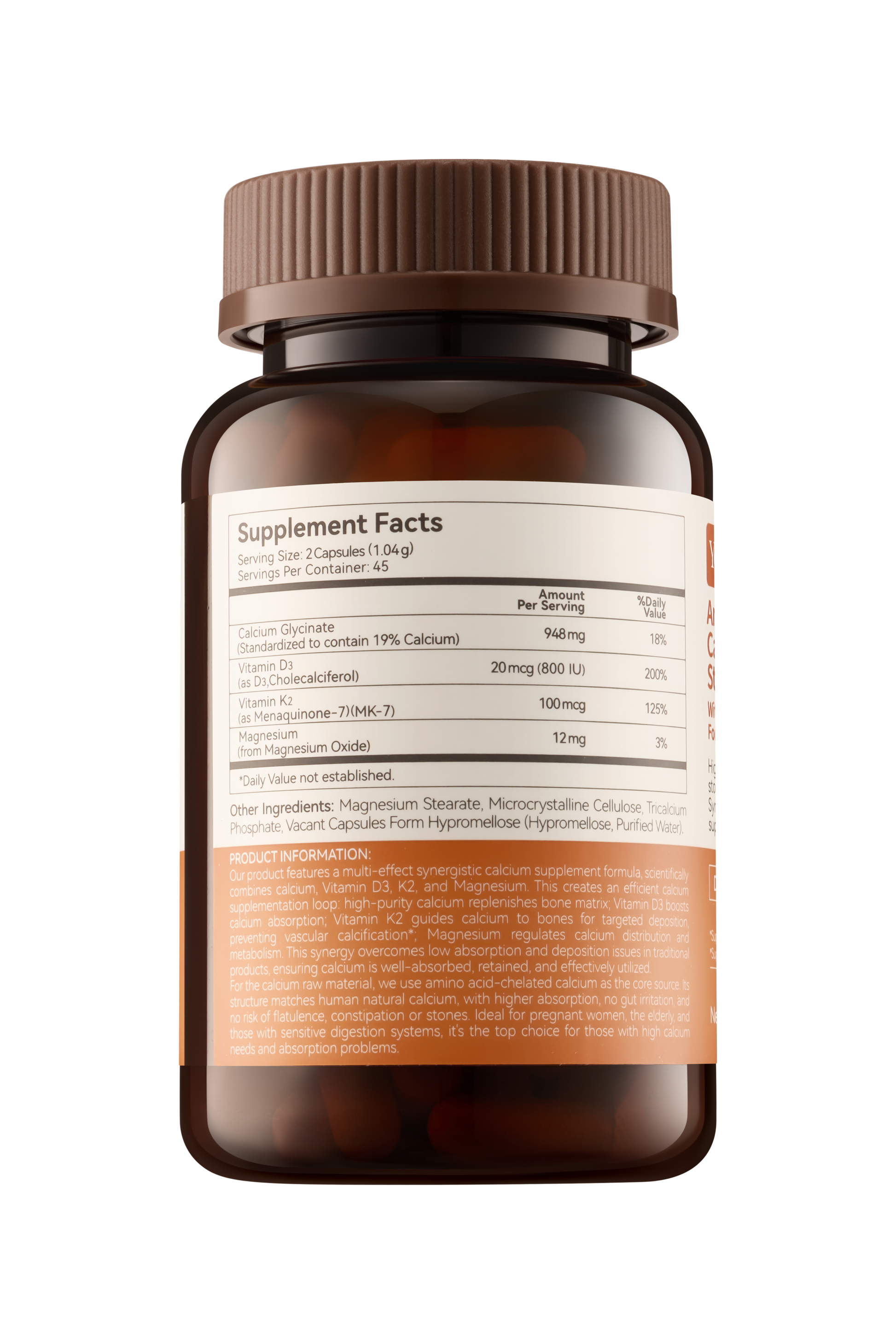 Amino Acid-Chelated Calcium For Sensitive Stomachs With D3, K2 And Magnesium For Enhanced Bioavailability